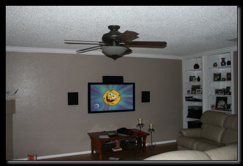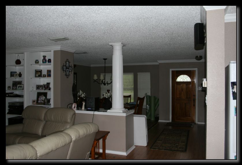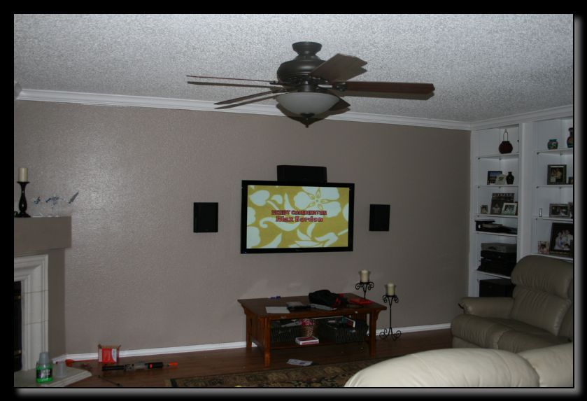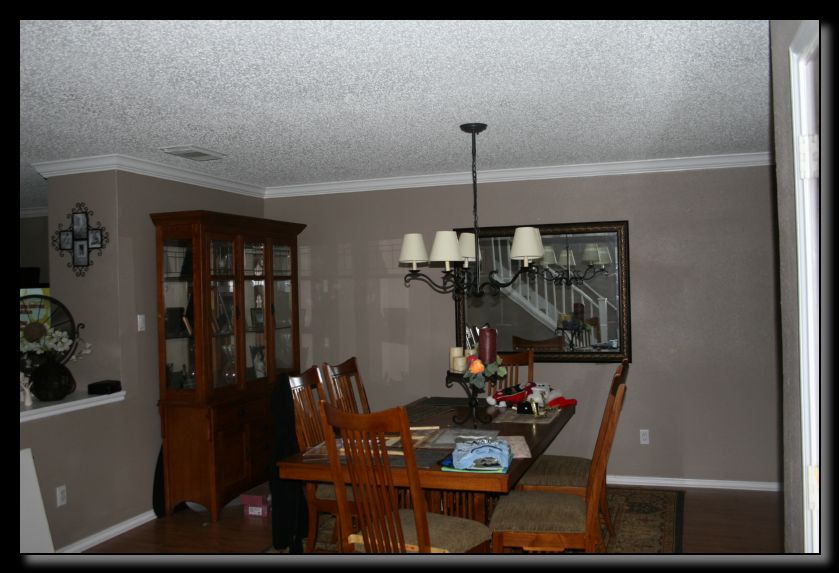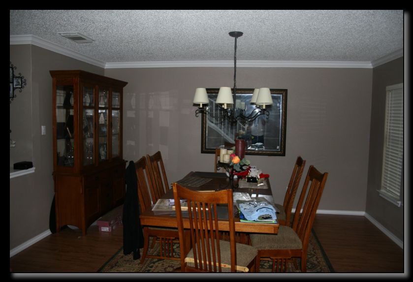 Drywall Repair & Interior House Painting Before & After Pictures – Redland Road – This couple in San Antonio off Redland Road and 1604 wanted to update their home and just make it look nicer. As you can see the pictures below, we installed crown molding, removed old paper borders and fixed holes made during the installation for a surround sound stereo system. We repaired a number of holes in the sheetrock and assisted in hiding the speaker wiring behind the new crown molding. We also caulked and painted the new crown molding.