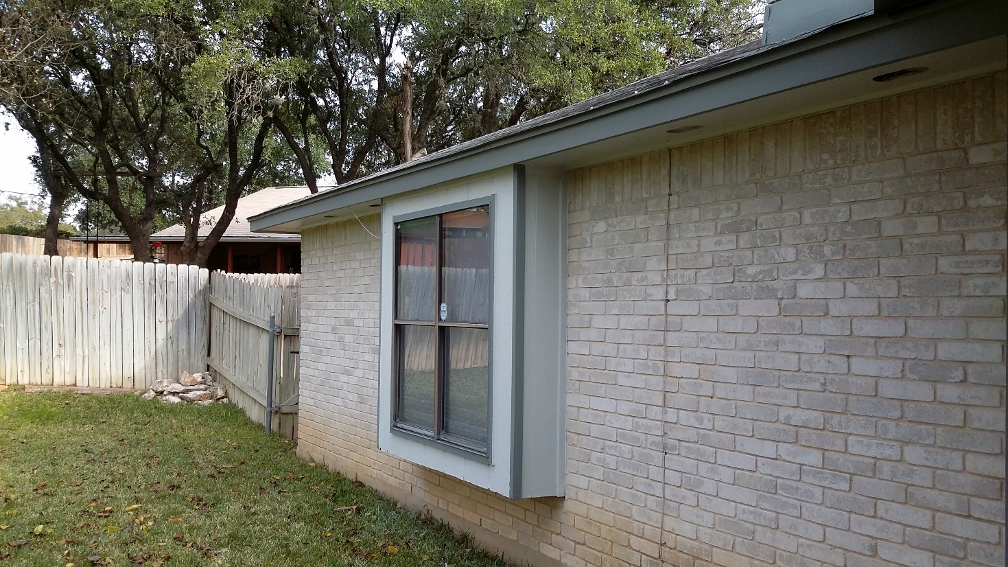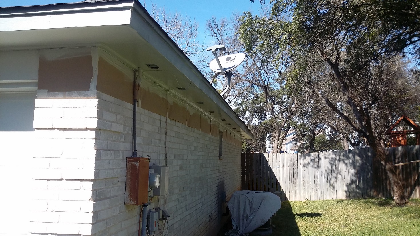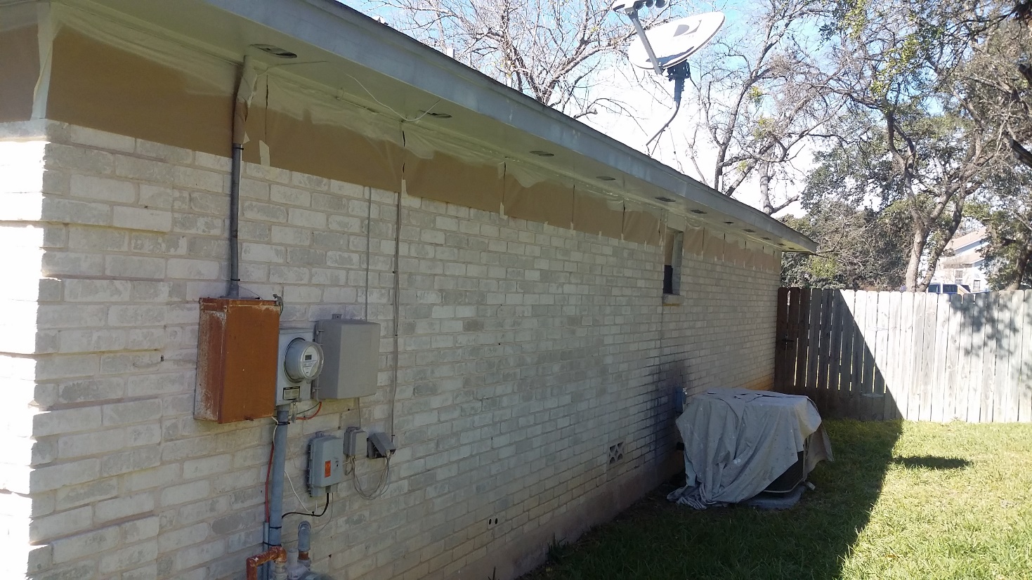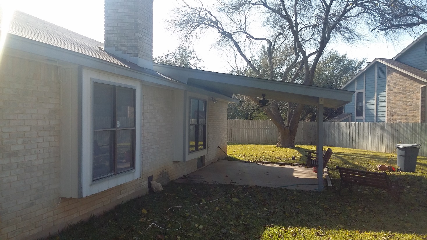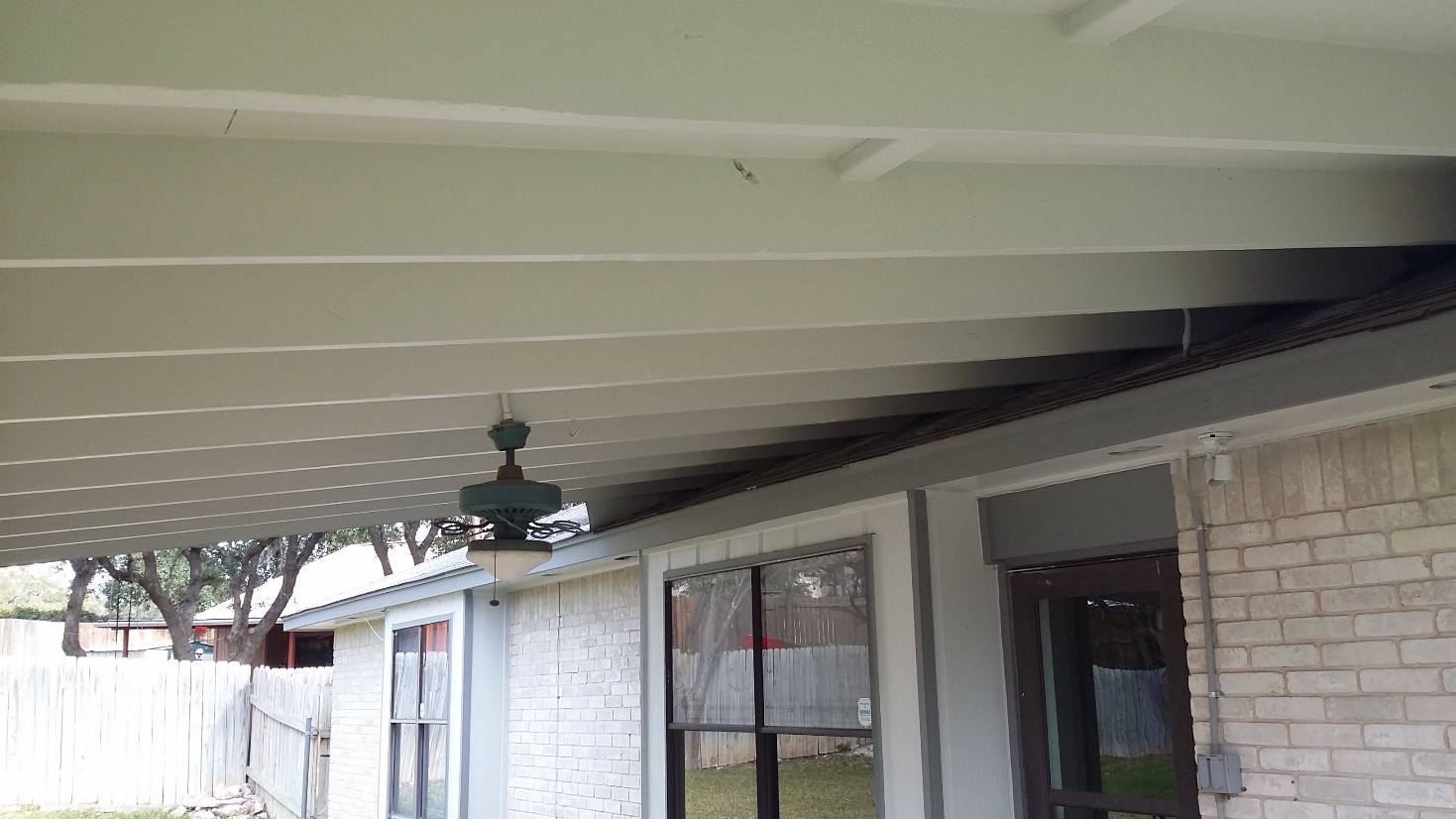 House Painter San Antonio Exterior & Interior Painting – This house in San Antonio, Texas was in need of an exterior paint refresh. Below are pictures of the painting. These are before, after and during pictures. We painted the eaves, fascia boards, siding and the patio cover. We made sure to mask off the windows and other areas to ensure a professional finish to the project. We offer different level of painting services. From a basic and nice finish to the very high end finish that home owners with high end homes expect. WE can meet your needs with a cost effective paint job . . to high end finishes. No job is to big or to small. We want to your one stop for all our home and office panting and drywall needs.